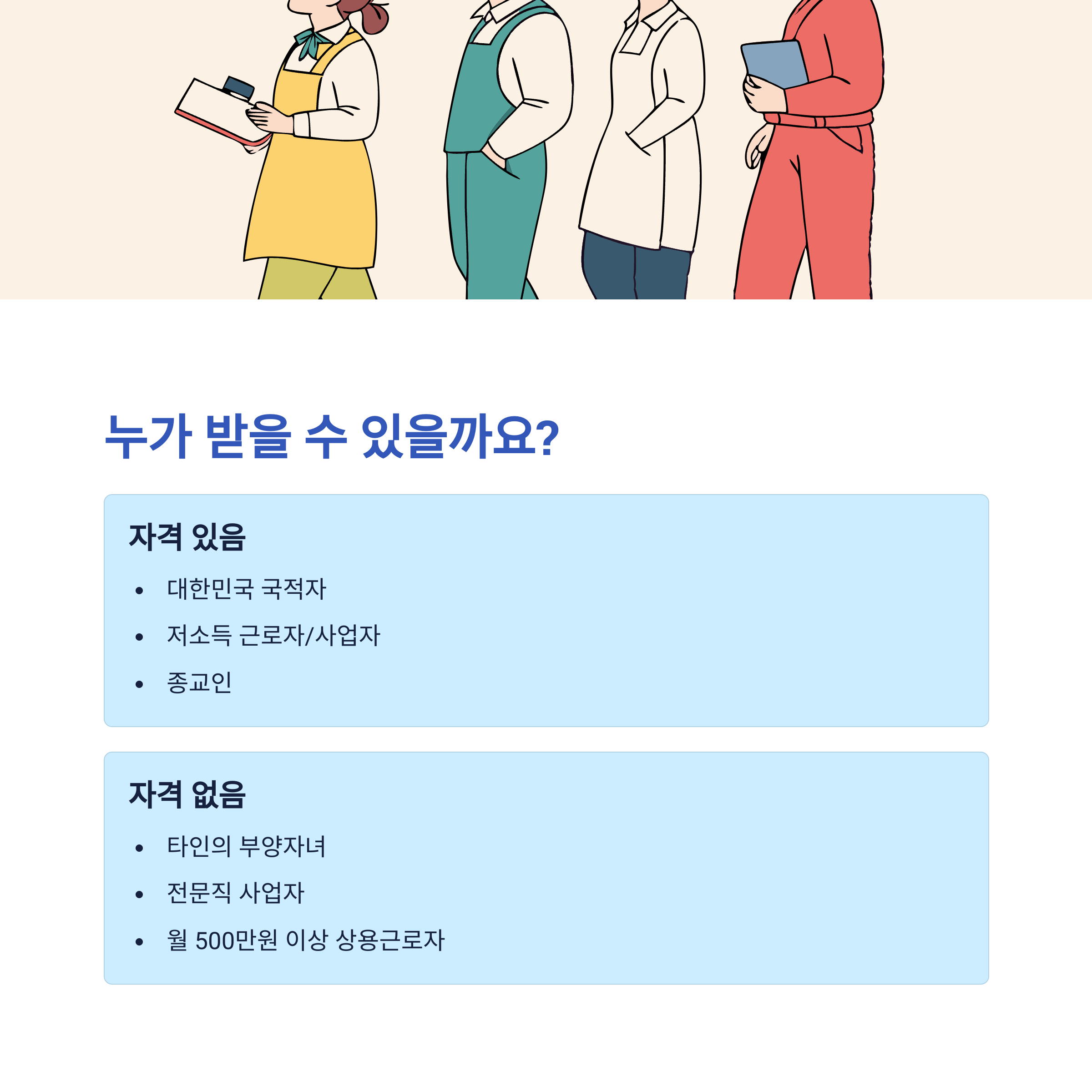 - 전문직 종사자 및 일정 기준 이상의 고소득 근로자는 제외