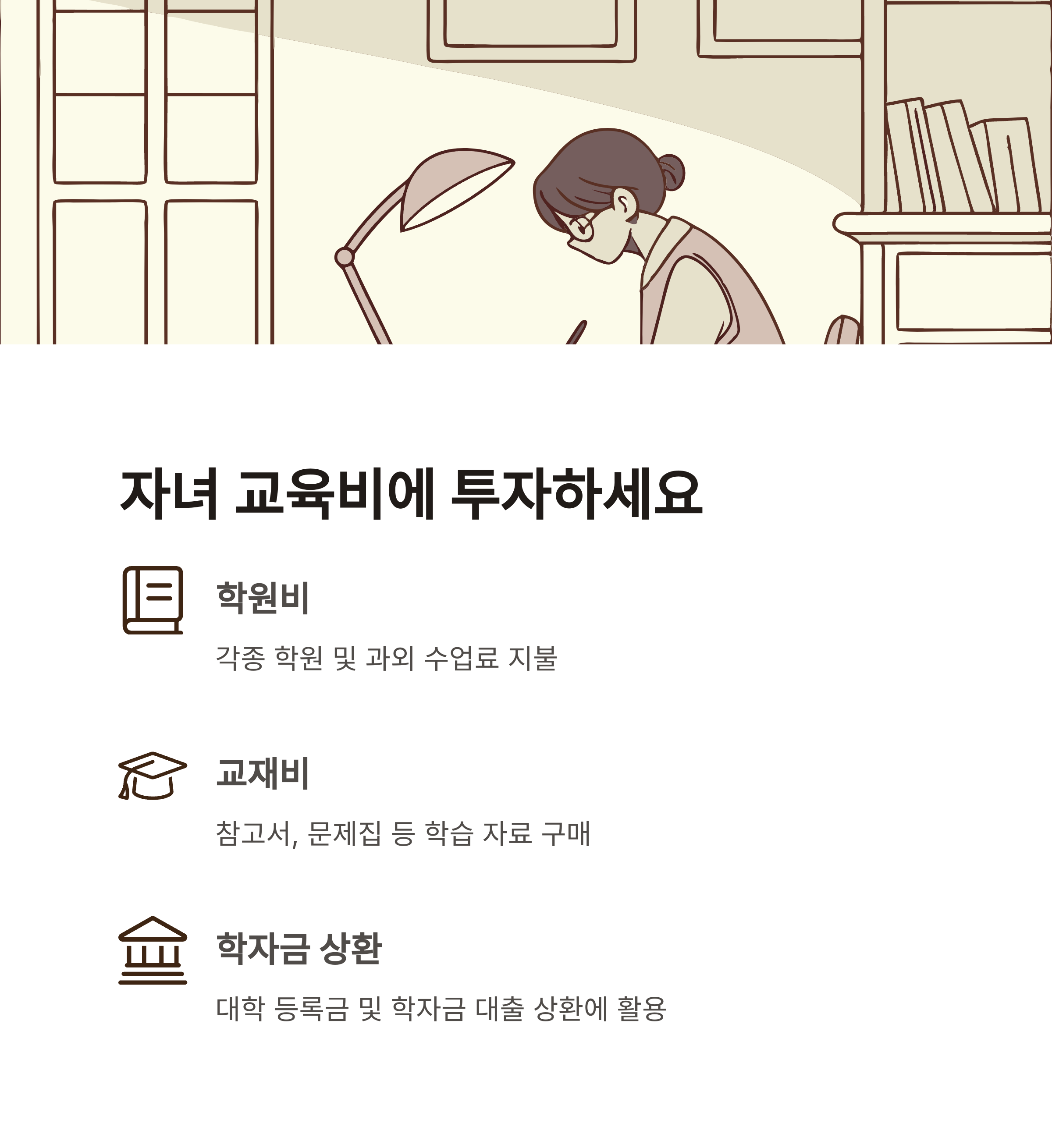 - 자녀 학원비, 교재비, 대학교 등록금