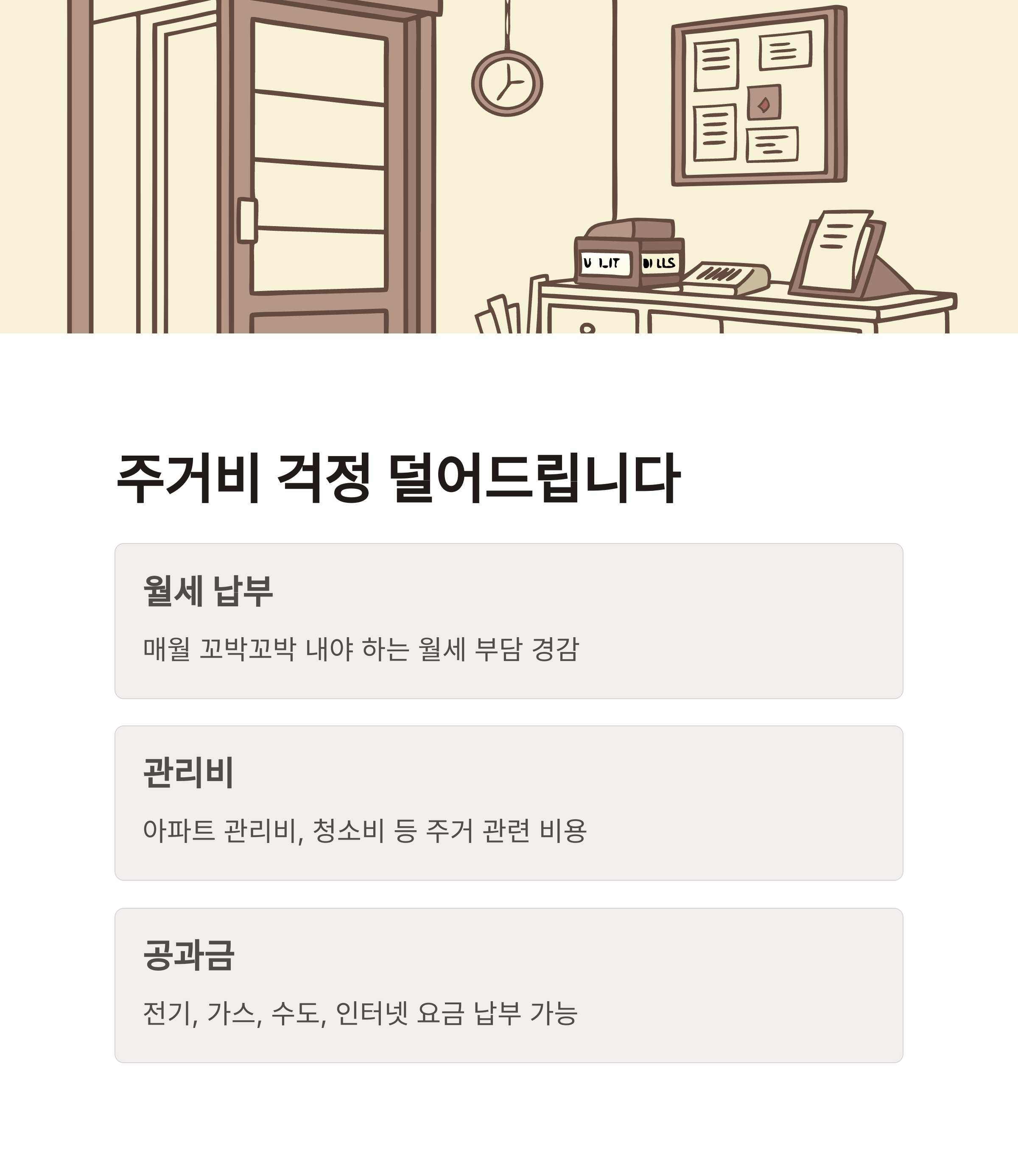 - 전기요금, 수도세, 관리비 등 포함