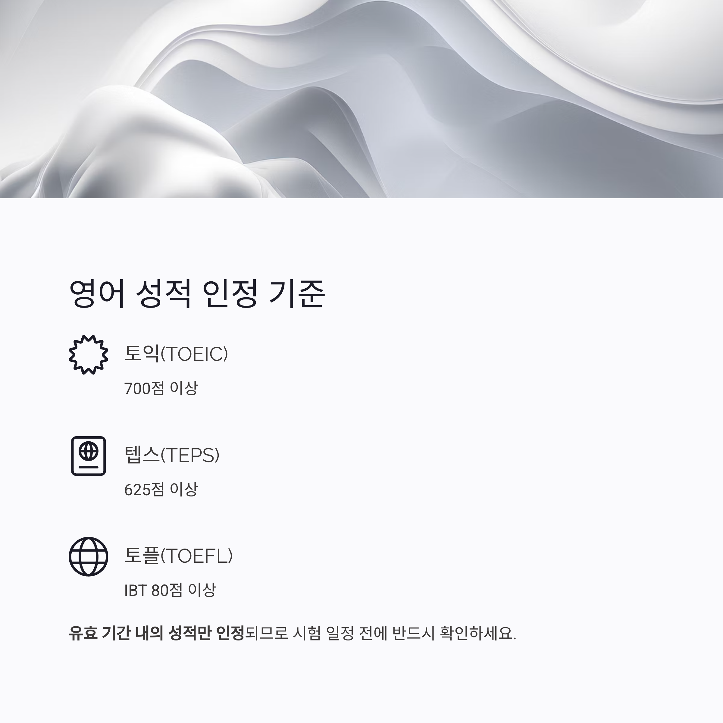 | 토익(TOEIC) | 700점 이상 |