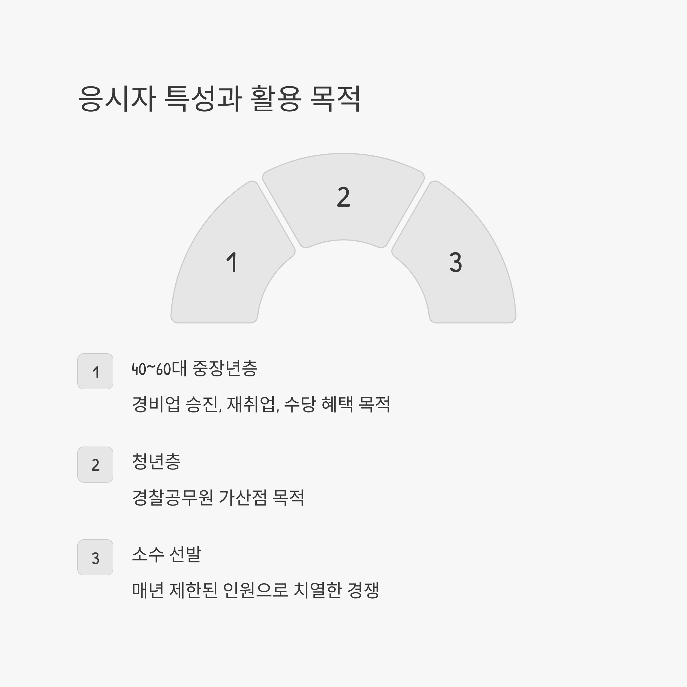 반면 청년층은 경찰공무원 가산점을 주요 목적으로 삼는 경향이 있습니다.