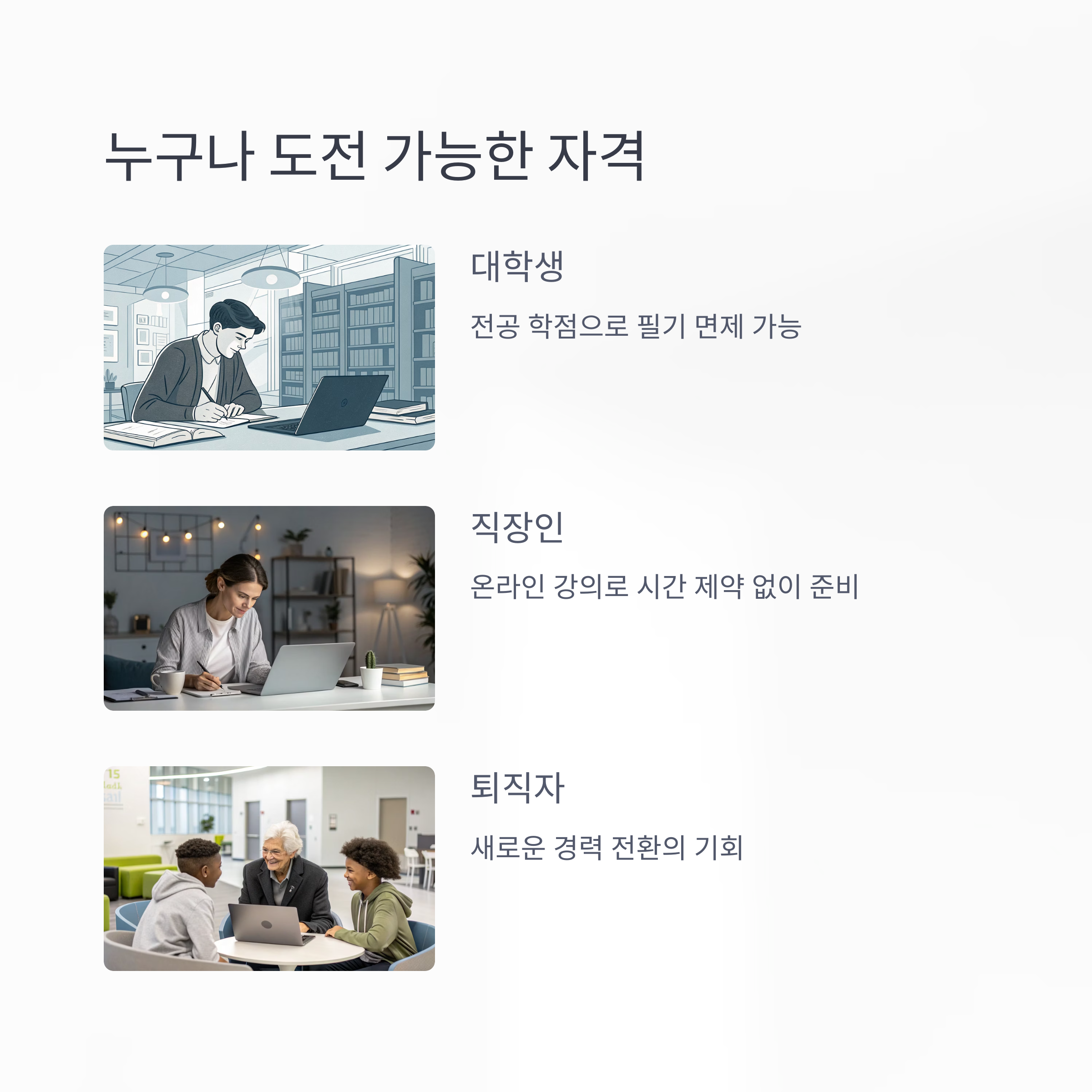 하지만 학점은행제, 전공인정제도 등을 활용하면 필기 면제 조건을 갖춰 합격 가능성을 높일 수 있습니다.