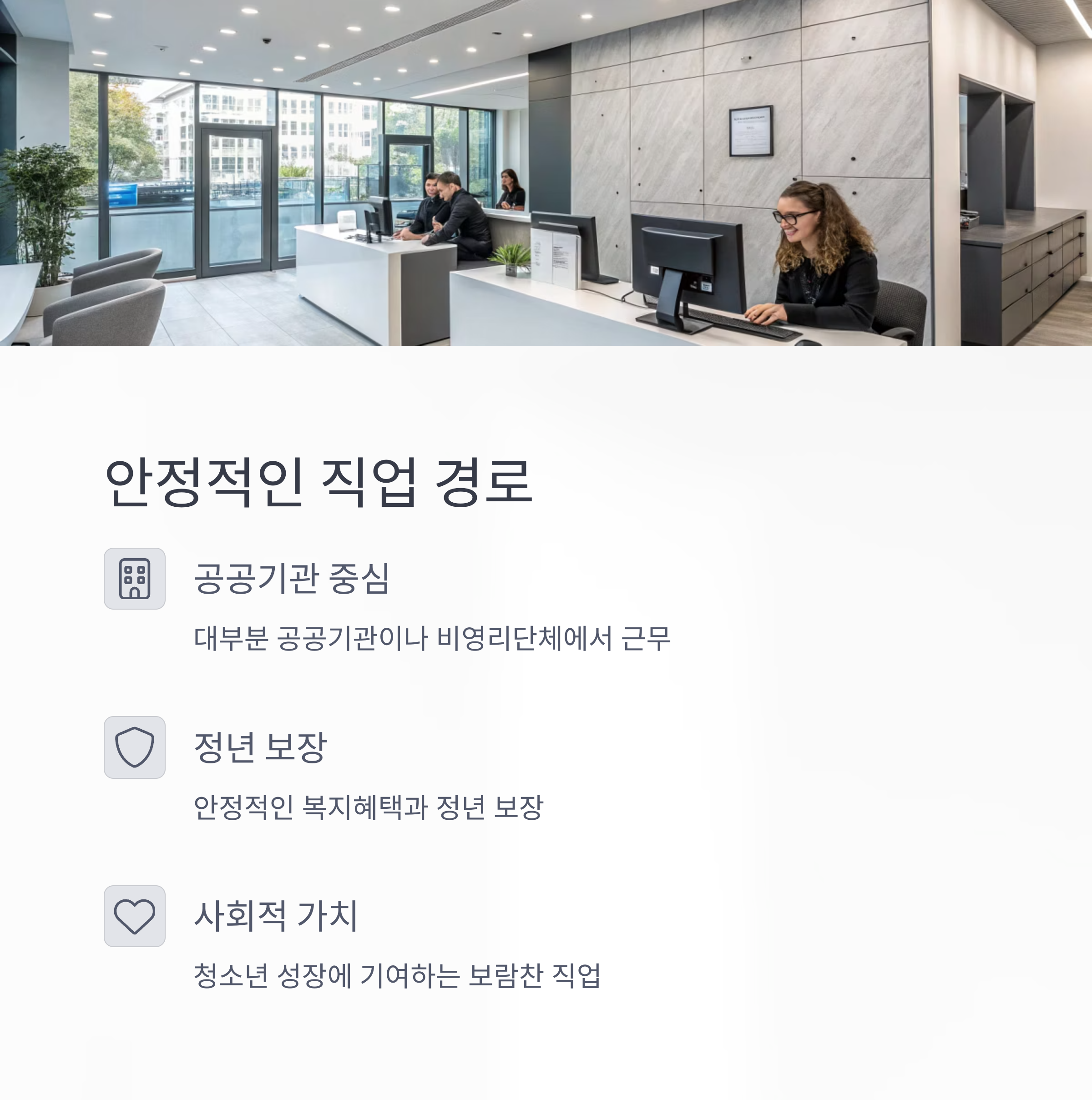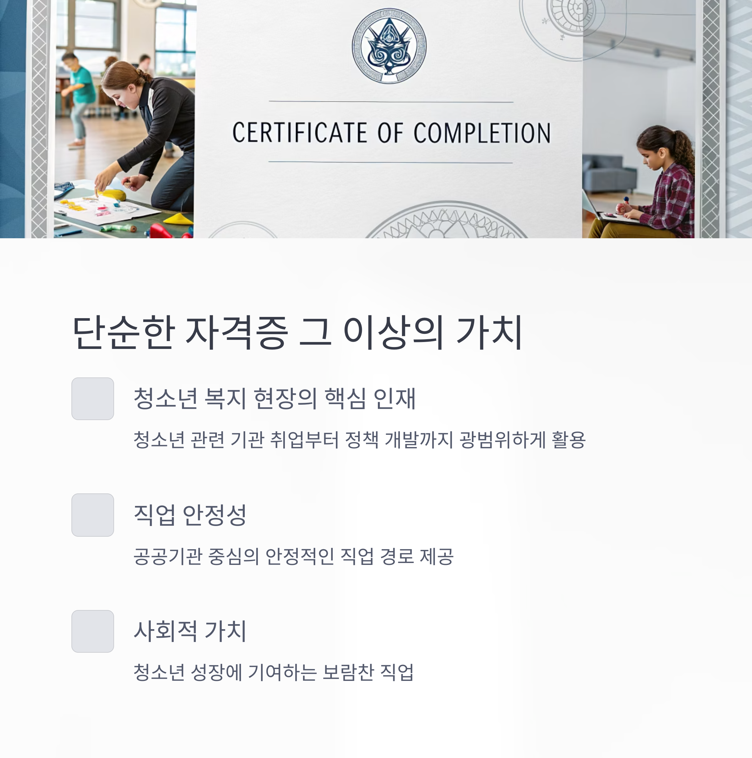 특히 지방자치단체 및 공공기관 채용에서 우대되며, 청소년정책 기획 및 프로그램 운영 분야에서도 전문성을 인정받습니다.