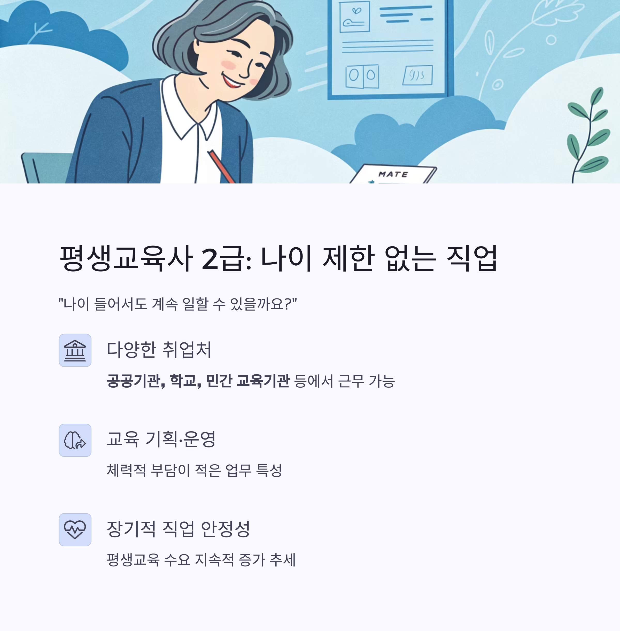 "평생교육사는 공공기관, 학교, 민간 교육기관 등 다양한 곳에서 일할 수 있고,