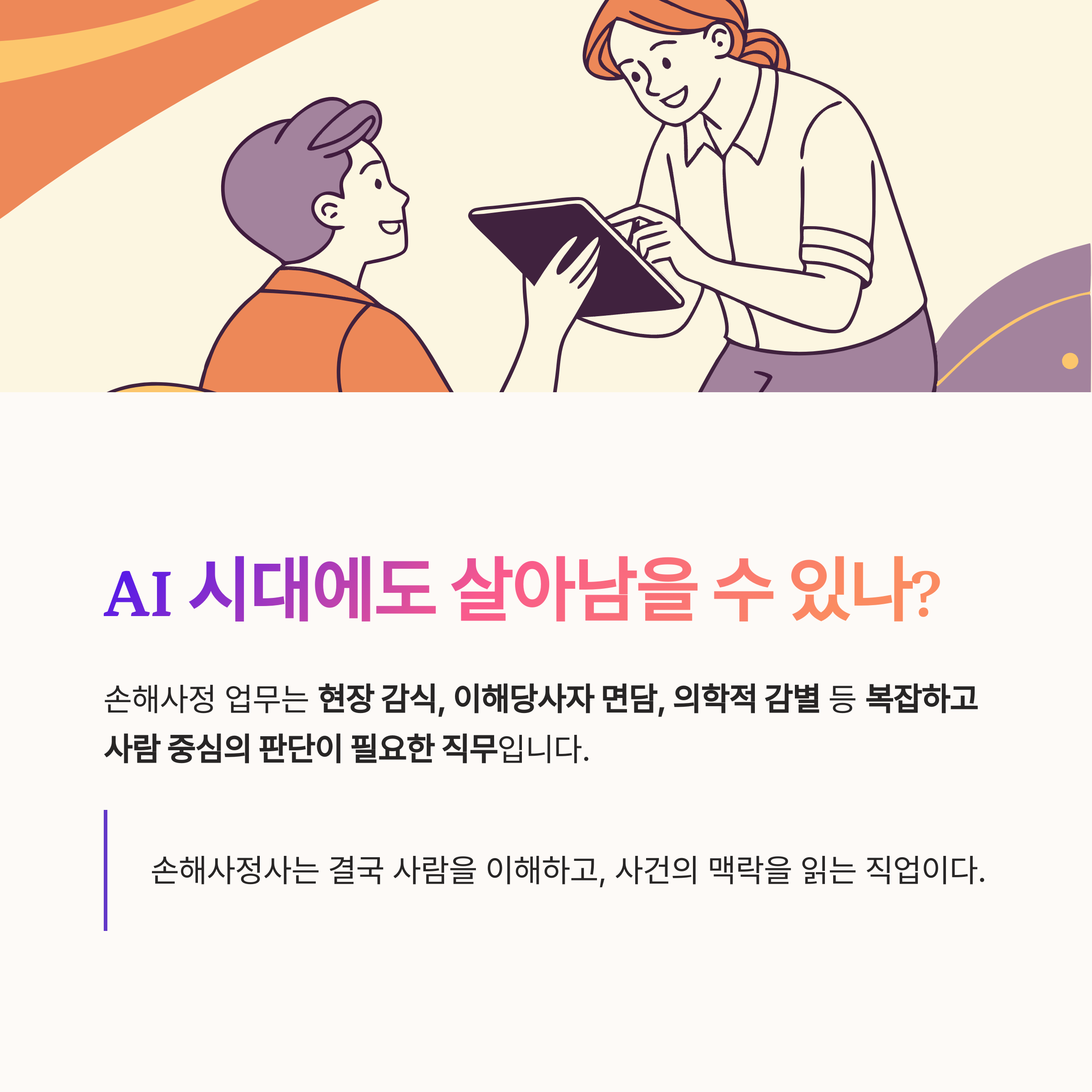 "손해사정사는 결국 사람을 이해하고, 사건의 맥락을 읽는 직업이다."