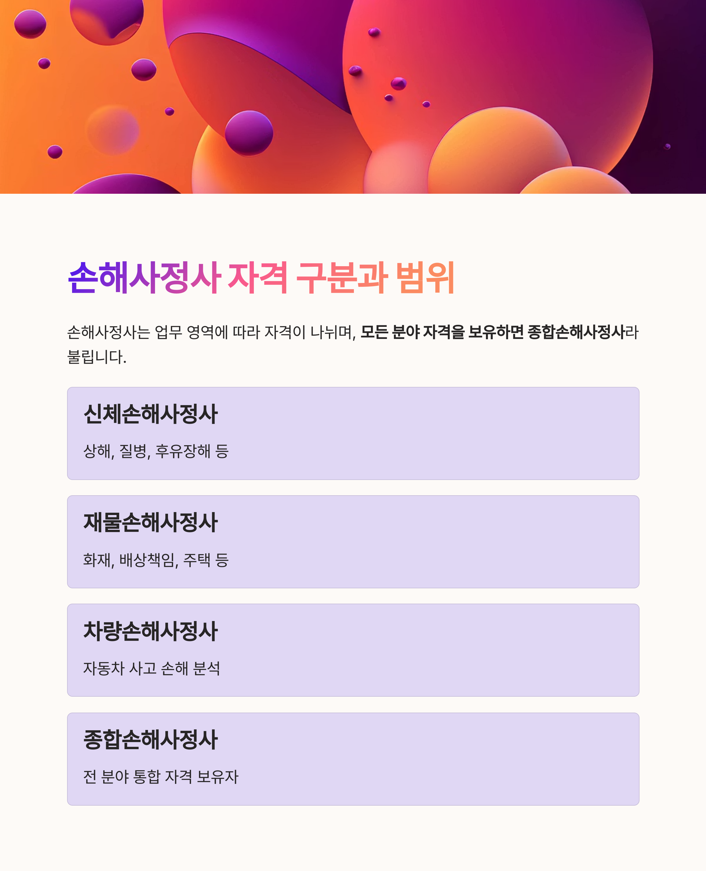 | 재물손해사정사 | 화재, 배상책임, 주택 등 |