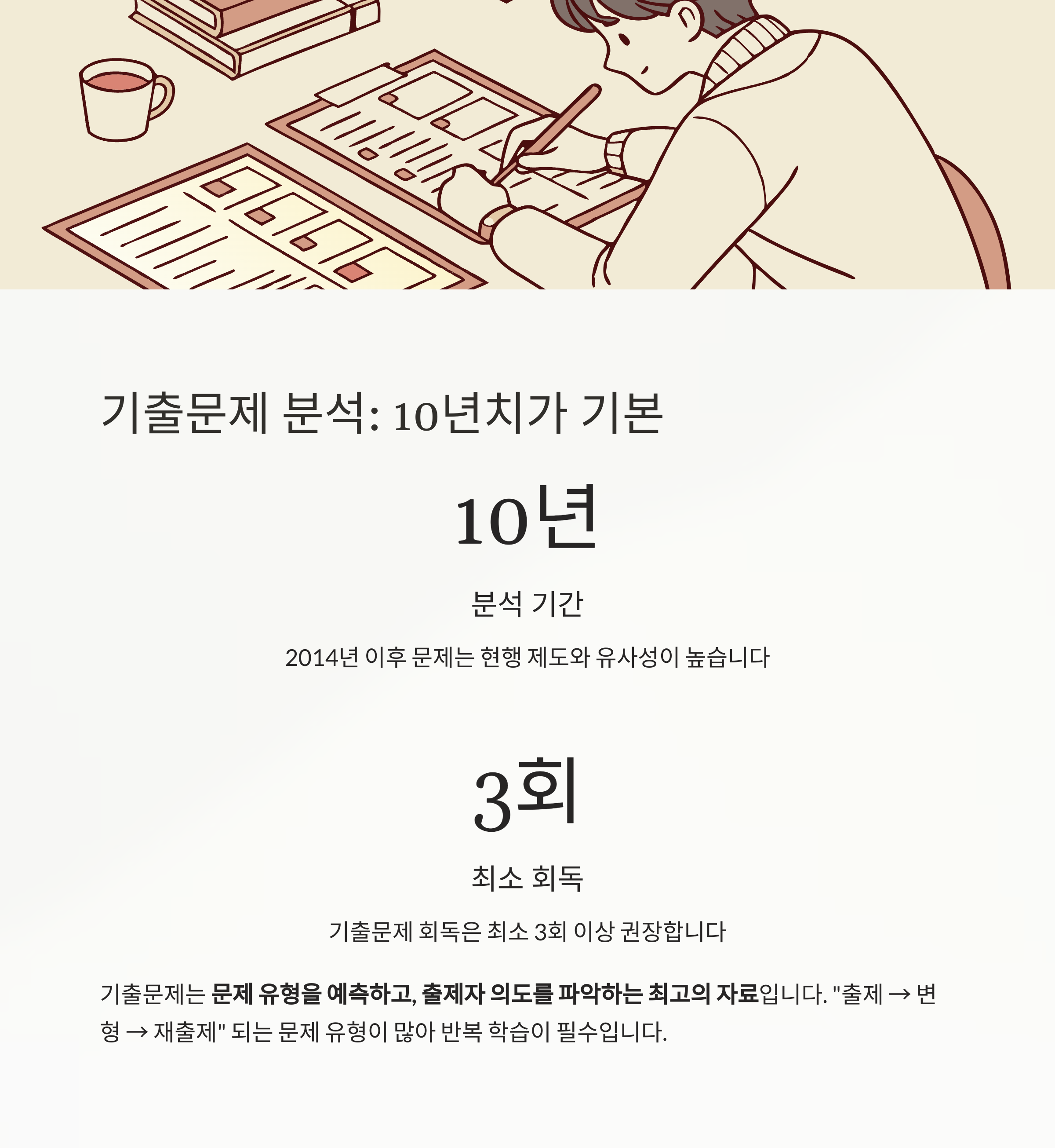 핵심: "이해 중심 → 암기 → 기출 회독" 순서를 반드시 지켜야 성과가 납니다.