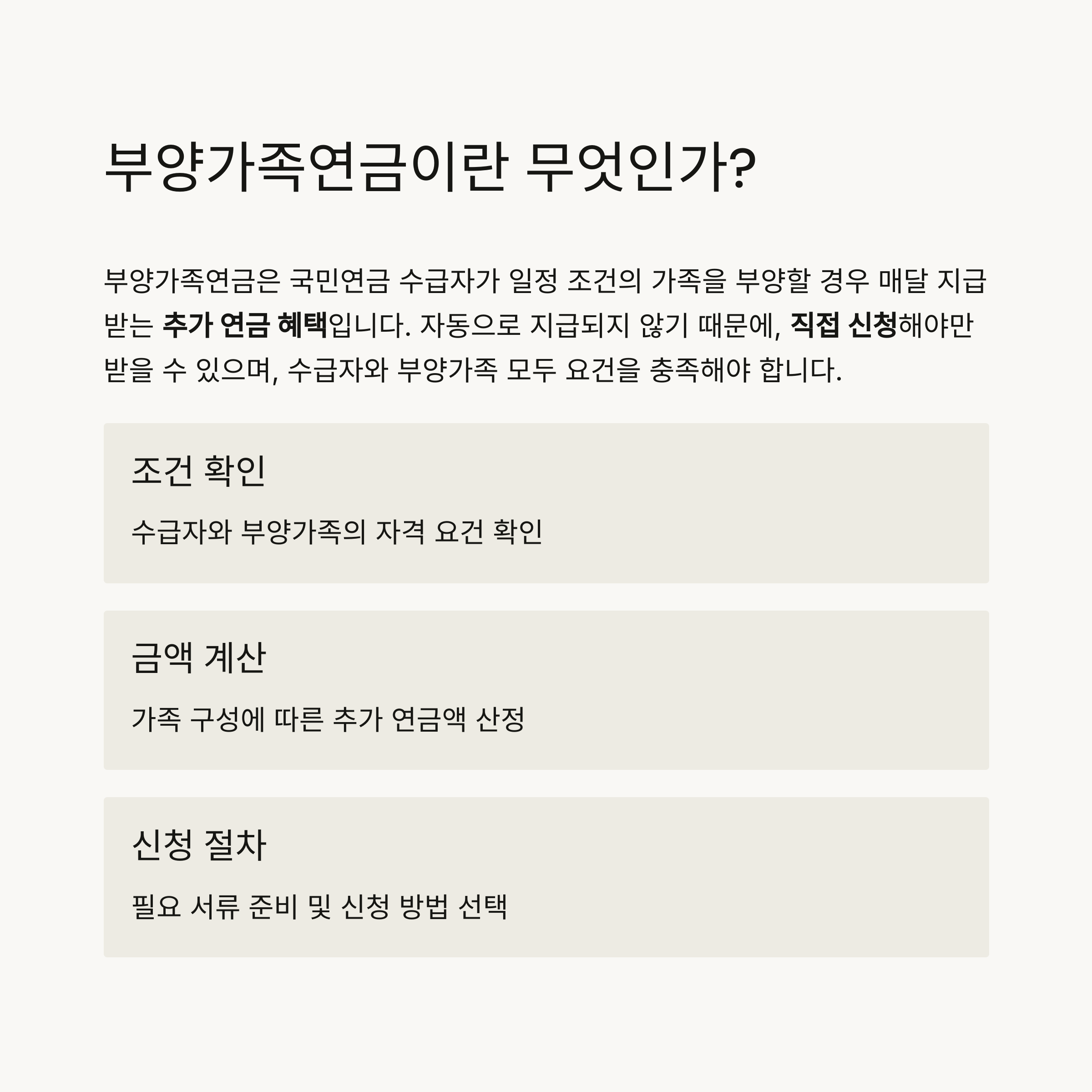 2025년 기준으로 바뀐 국민연금 부양가족연금 조건과 지급 절차를 꼭 확인해보세요.
