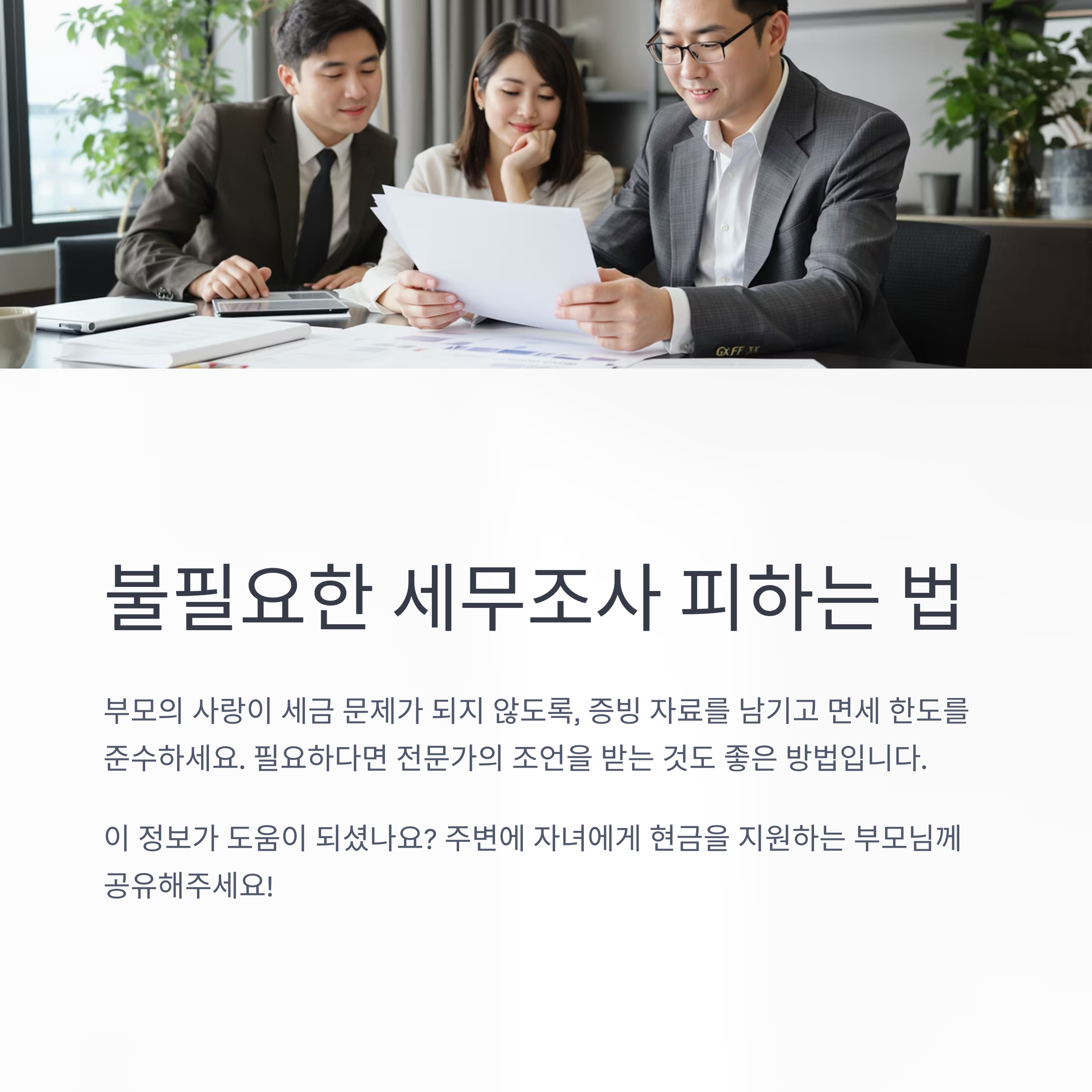 - 증빙자료 확보와 사전 신고로 추징 리스크를 줄일 수 있다.