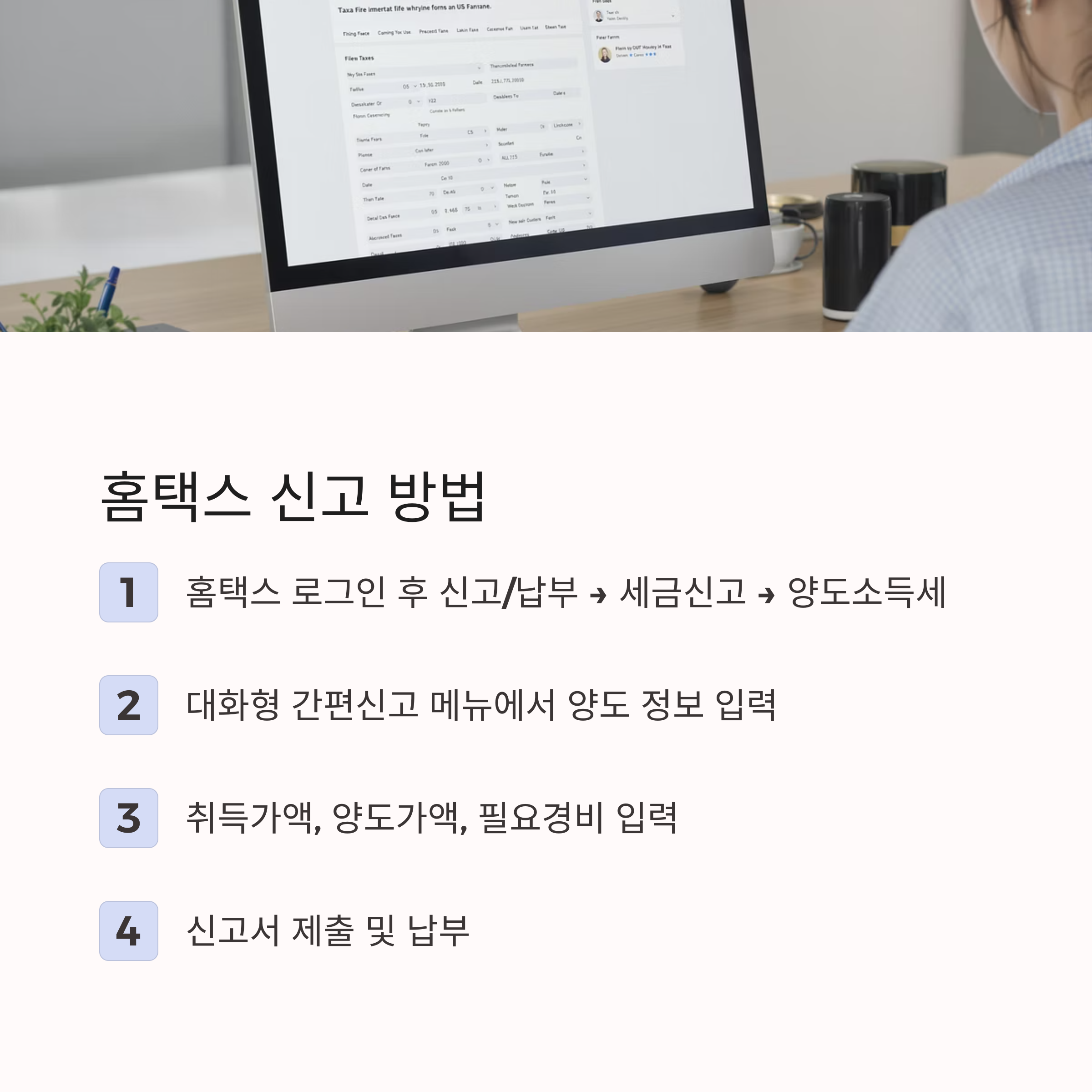 2025년 현재, 대부분의 양도소득세 신고는 국세청 홈택스를 통해 온라인으로 가능합니다.