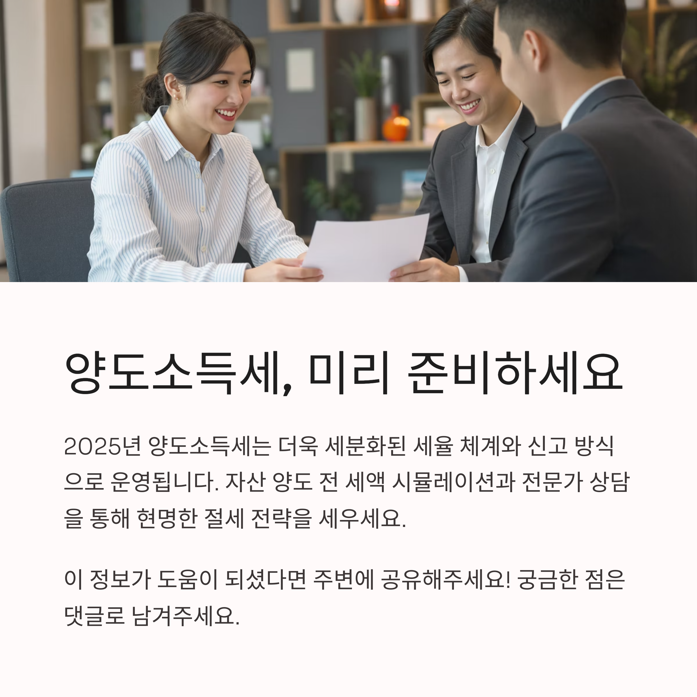 자산을 양도할 계획이 있다면, 양도 전 미리 세액을 시뮬레이션하고 전문가 상담을 받는 것도 현명한 절세 전략이 될 수 있습니다.
