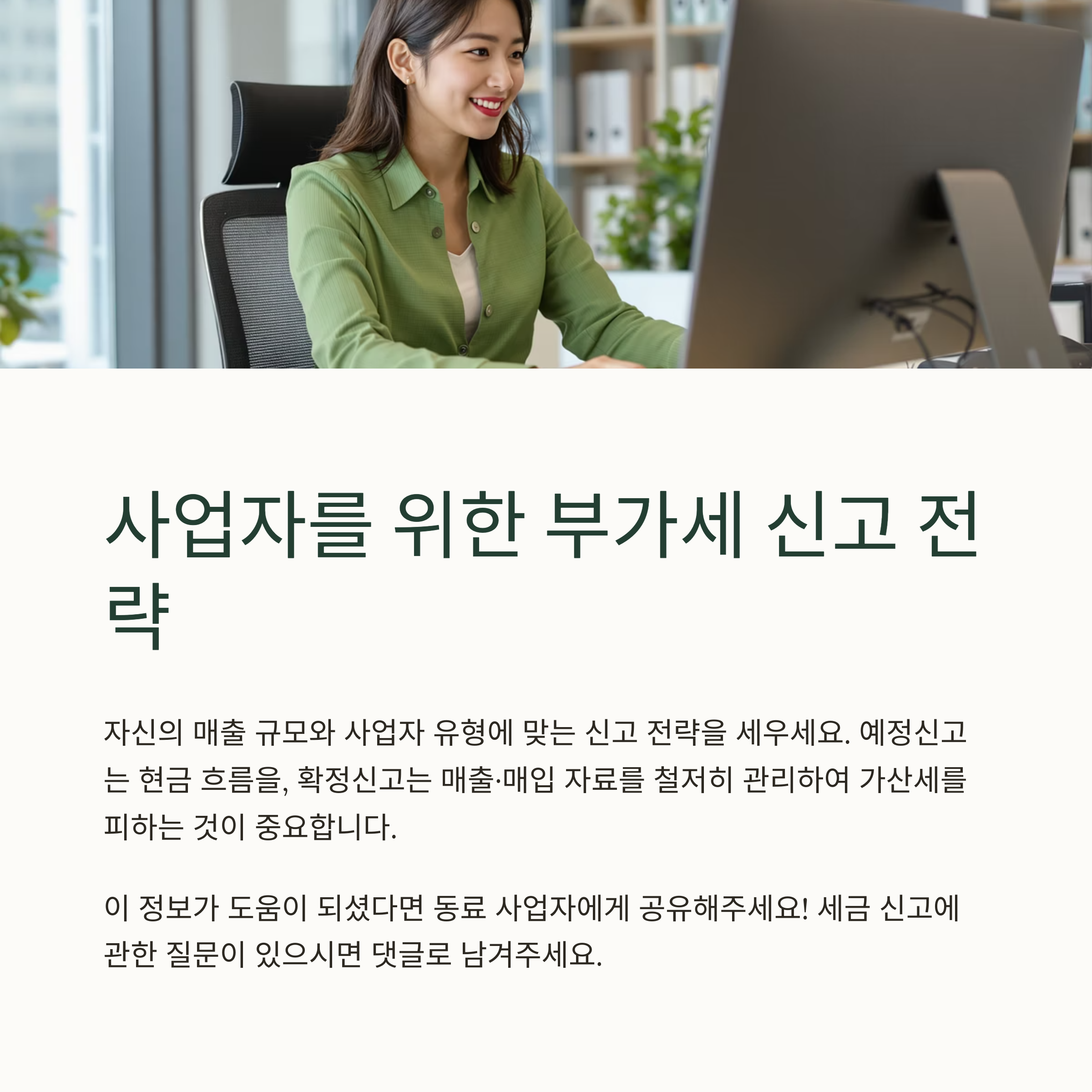 사업자는 단순히 세금을 납부하는 것을 넘어서, 자신의 매출 규모와 사업자 유형에 맞는 신고 전략을 세워야 합니다.