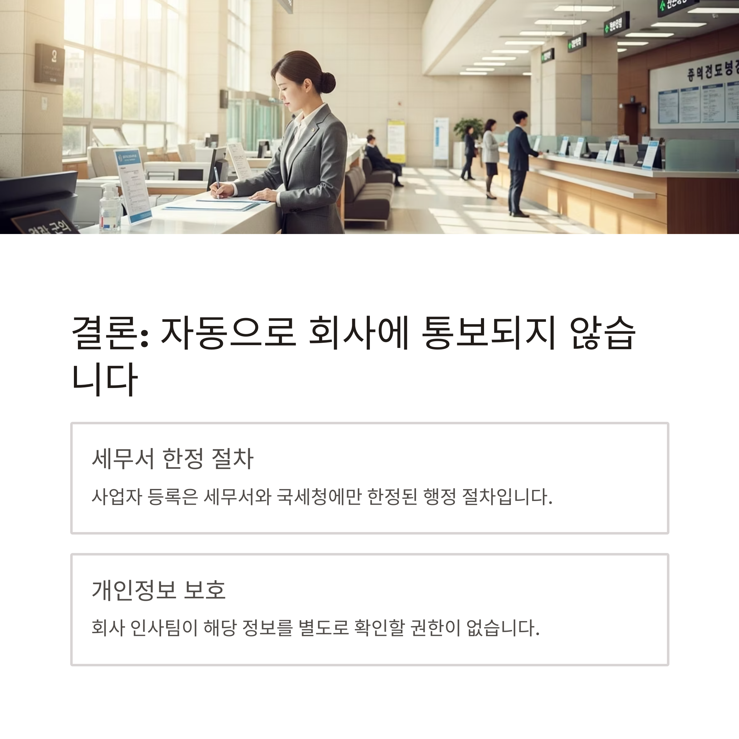 ✔ 단순한 개인사업자 등록만으로는 회사에 통보되지 않는다.